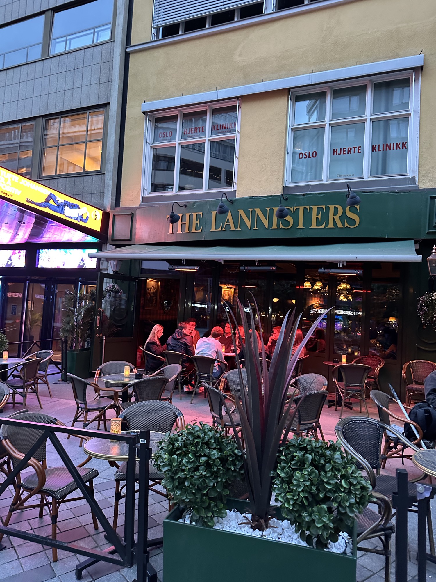 En klassisk pub midt i Oslo Bare noen skritt fra Nationaltheatret og Klingenberg Kino har The Lannisters – Nasjonaltheatret vært en favoritt blant både fastboende og turister siden 2015. Med sin varme pubatmosfære og irske sjel, ønsker vi alle velkommen – enten du er stamgjest, på besøk, eller bare titter innom. Inne møter du lune treinteriør, storskjerm med fotballkamper og den avslappa stemningen til et skikkelig nabolagspub. Ute tilbyr vi et lite, oppvarmet serveringsområde hvor du kan nyte noe godt i glasset – midt i hjertet av Oslos historiske sentrum. Enten det er etter jobb, før middag eller sent på kvelden – The Lannisters står alltid klar med en kald pint, godt selskap og en god grunn til å bli sittende litt lenger.